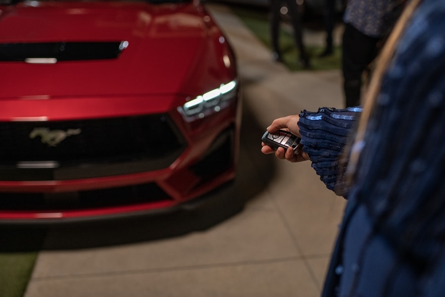 Feel the power at your fingertips. Intelligent Access with push-button* start comes standard on all 2024 Mustang® models. With this key fob in your pocket or bag, you can just get in, buckle up and fly.